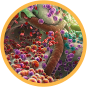 Le molecole di grasso vengono trasportate ai muscoli che mancano di energia. L'ossigeno entra nei muscoli e inizia il processo chimico di scomposizione delle cellule di grasso.